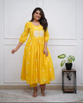 Womens comfortable and look classy pure mul mul cotton pant set with work detailing