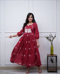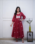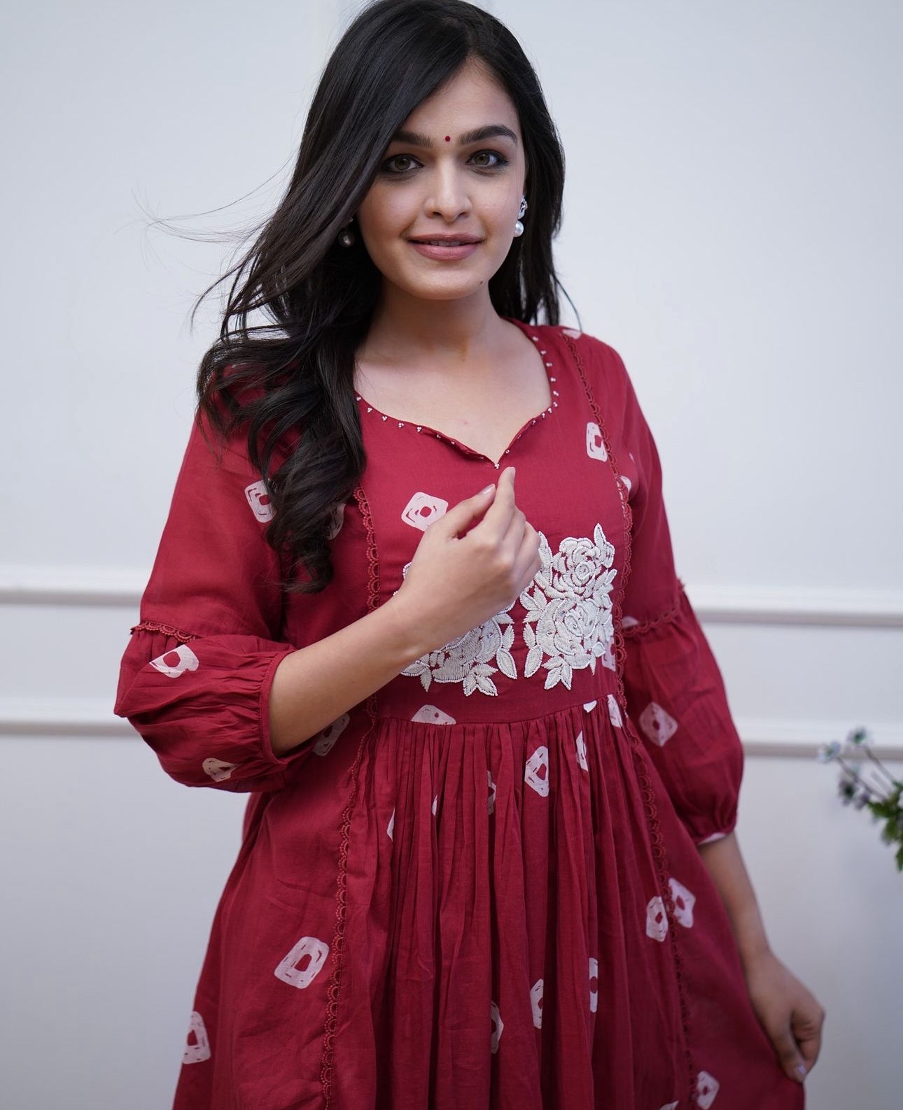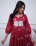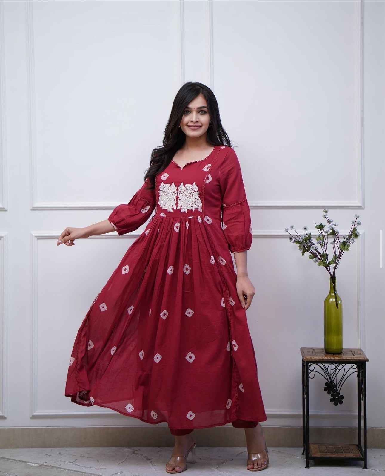 Womens comfortable and look classy pure mul mul cotton pant set with work detailing Red