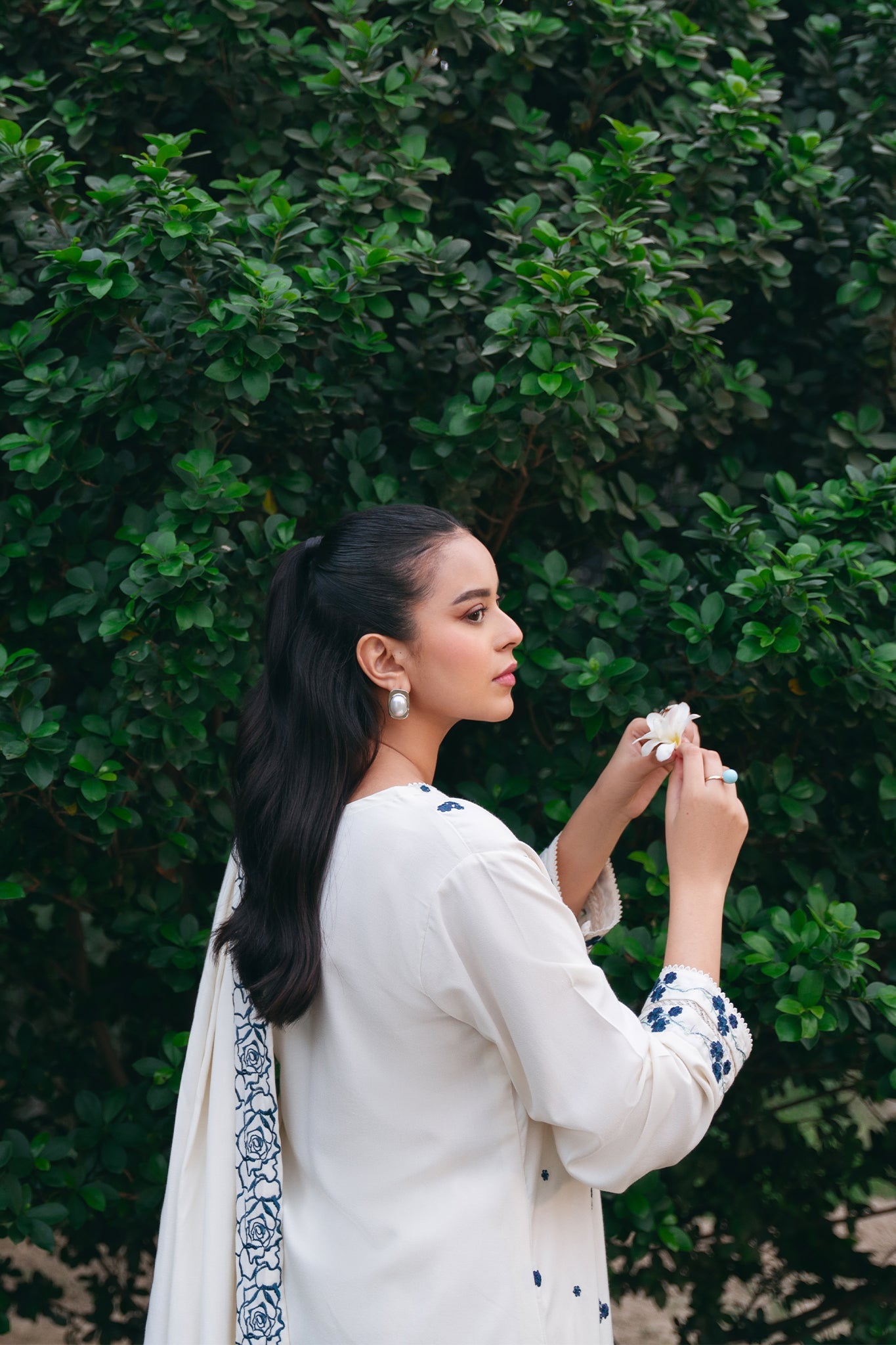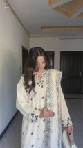 Women's White Cotton Embroidered 3-Piece Suit – Kurta, Pants & Dupatta